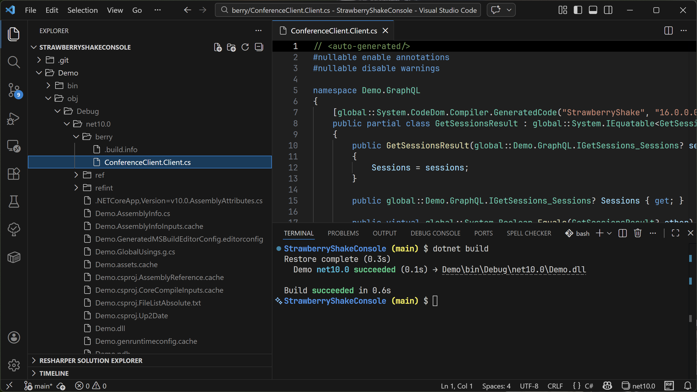 dotnet add Demo package StrawberryShake.Server